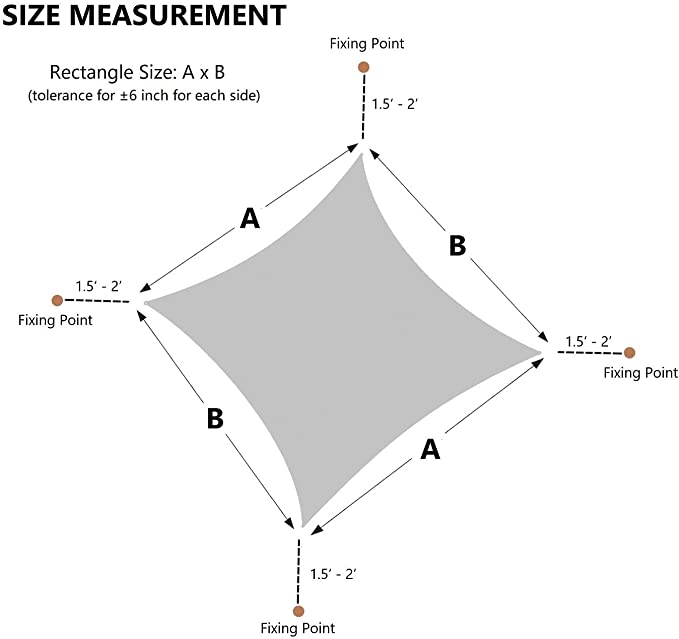 Easy to Use - Attach the shade sail D-rings to your structure with the included ropes. Four 5-feet ropes and an instruction sheet come in the package. Measurement is taken from D ring to D ring, Leave an 1.5-2 ft space between the fixing point and the shade sail to fit hardware or rope.