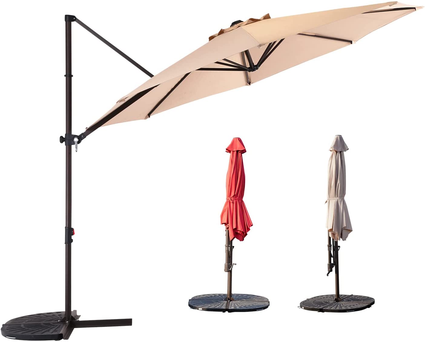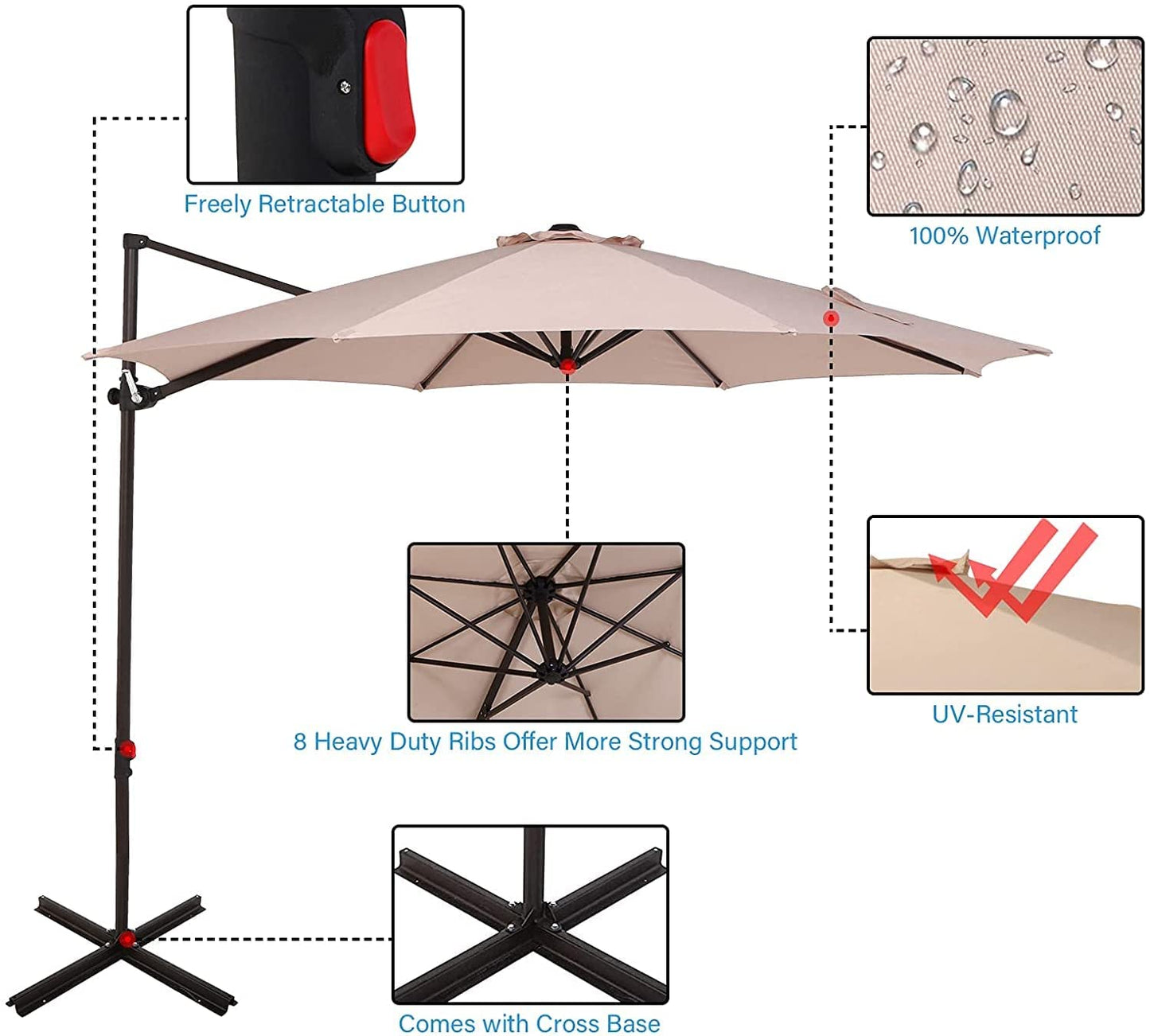 1. 10FT Patio Umbrella is equipped with a hand-crank lift and an easy-tilt system that allows you to adjust the shade and block the sun at all angles.