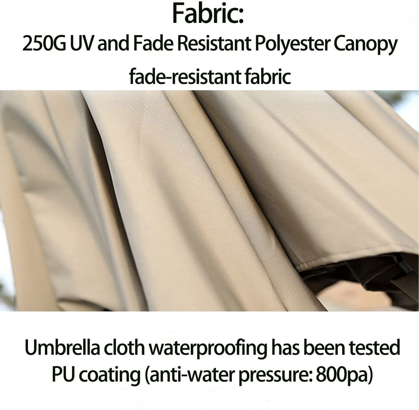 2. This patio umbrella is made of a mixture of strong material and a waterproof outer layer.