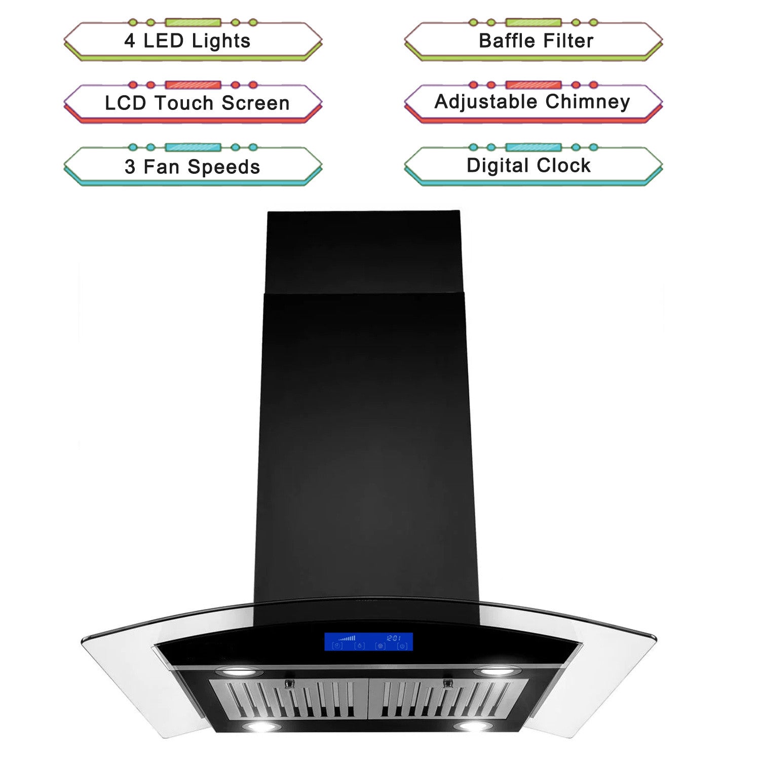 36 in. 700 CFM Ducted Stainless Steel Island Mount Range Hood Tempered Glass with LED Lights-Black