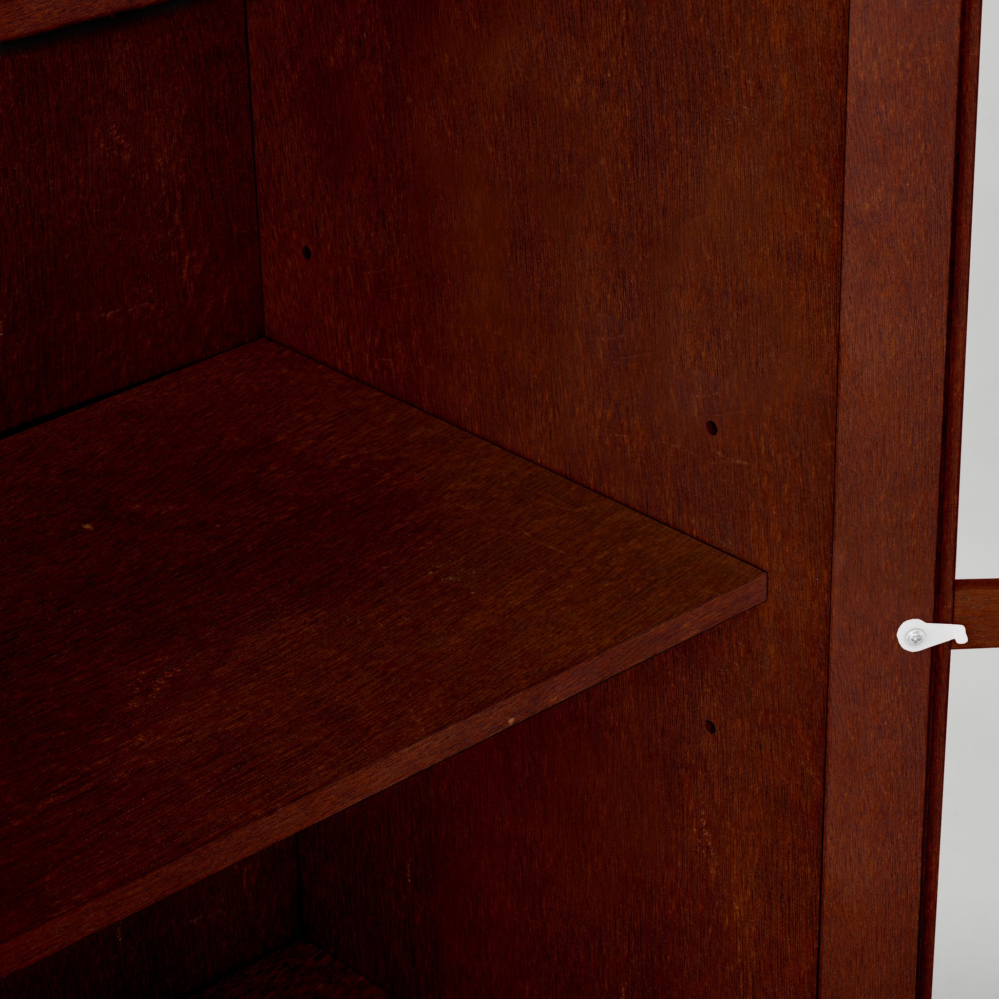 It has plenty of space to display your favorite china or home decor with a total of 4 shelves and an easy-to-slide storage drawer for tablecloths and silverware. Each shelf can hold up to 15 lbs. 2 of the 4 shelves are adjustable, just move the shelf pegs to the correct peg hole height to display collections large and small.