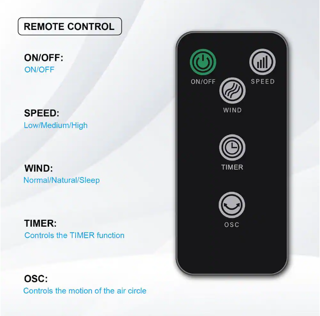 Remote control: The fan is equipped with a 118 inch remote control. Remote control, you can remotely control the fan from the bed or sofa, and set the damper and timing as required