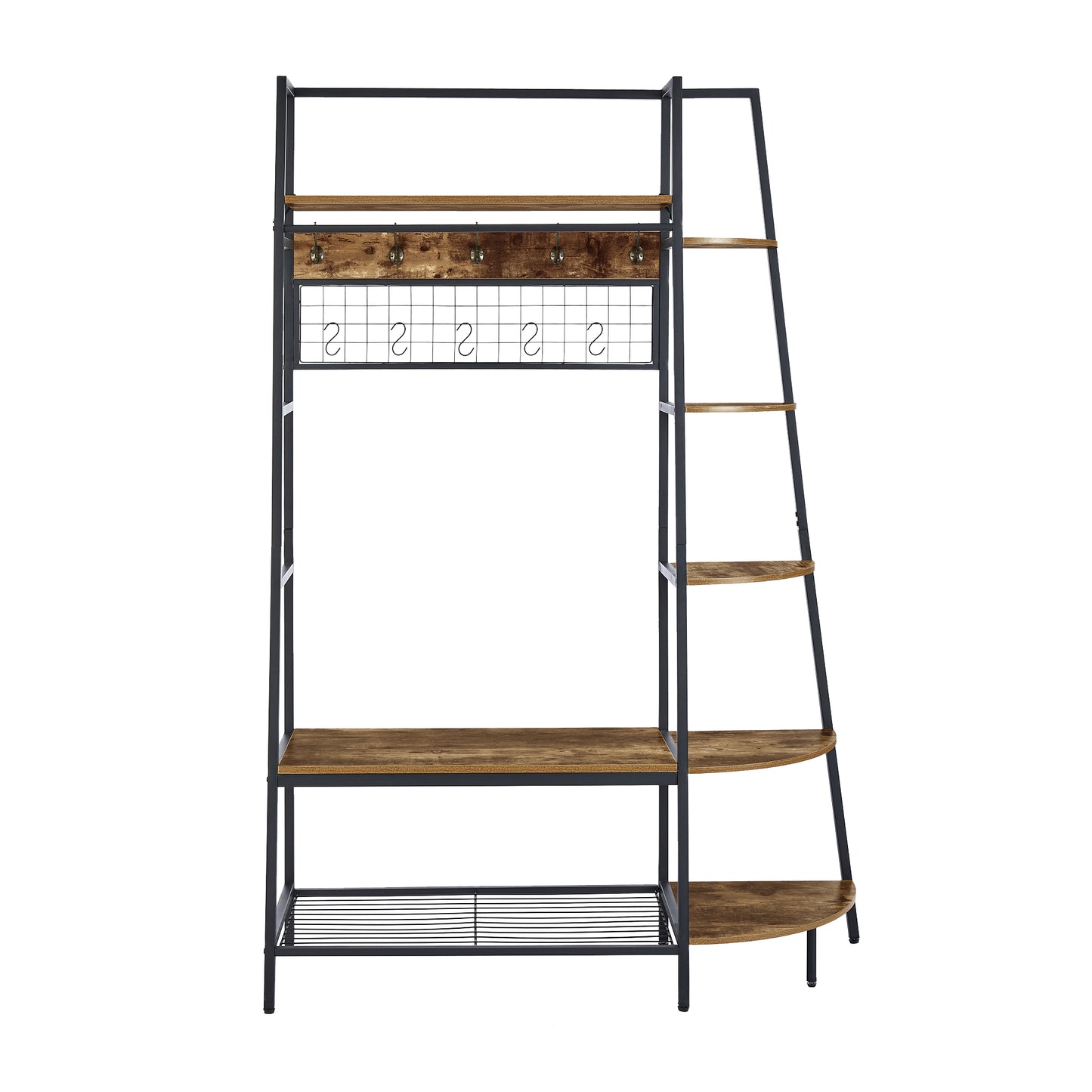 Entryway Coat Rack with Bookshelves, Multiple Hooks, and Bench Seat