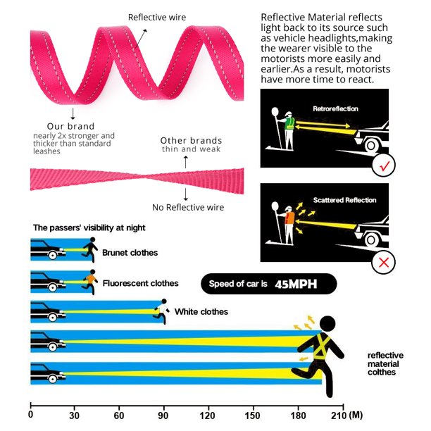 PET Double Handle Dog Leash 6ft Long, Padded Traffic Handle, Heavy Duty and Reflective, Training Leash for Medium Large Dogs, Pink